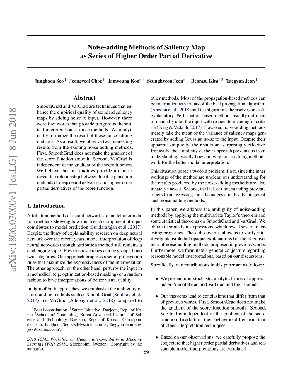 Noise-adding Methods of Saliency Map as Series of Higher Order Partial