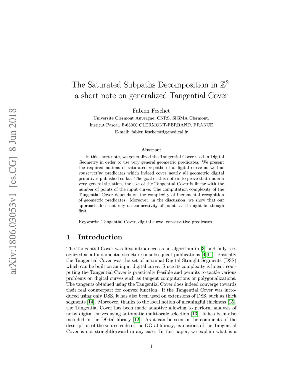In this short note, we generalized the Tangential Cover used in Digital Geometry in order to use very general geometric predicates. We present the required notions of saturated -paths of a digital curve as well as conservative predicates which indeed cover nearly all geometric digital primitives published so far. The goal of this note is to prove that under a very general situation, the size of the Tangential Cover is linear with the number of points of the input curve. The computation complexity of the Tangential Cover depends on the complexity of incremental recognition of geometric predicates. Moreover, in the discussion, we show that our approach does not rely on connectivity of points as it might be though first.