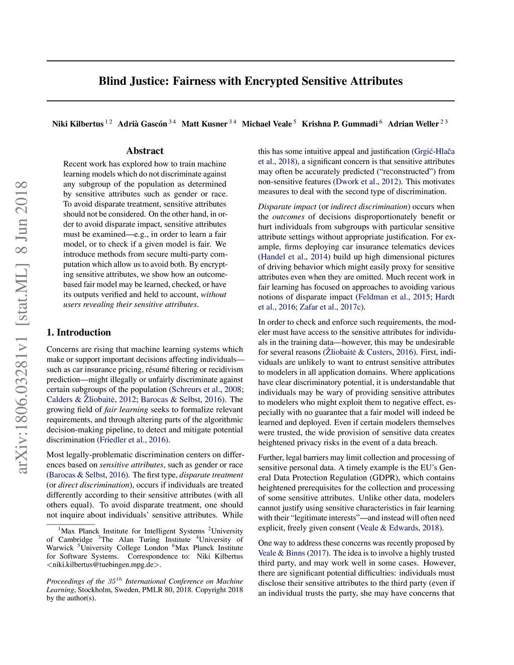 Blind Justice: Fairness with Encrypted Sensitive Attributes