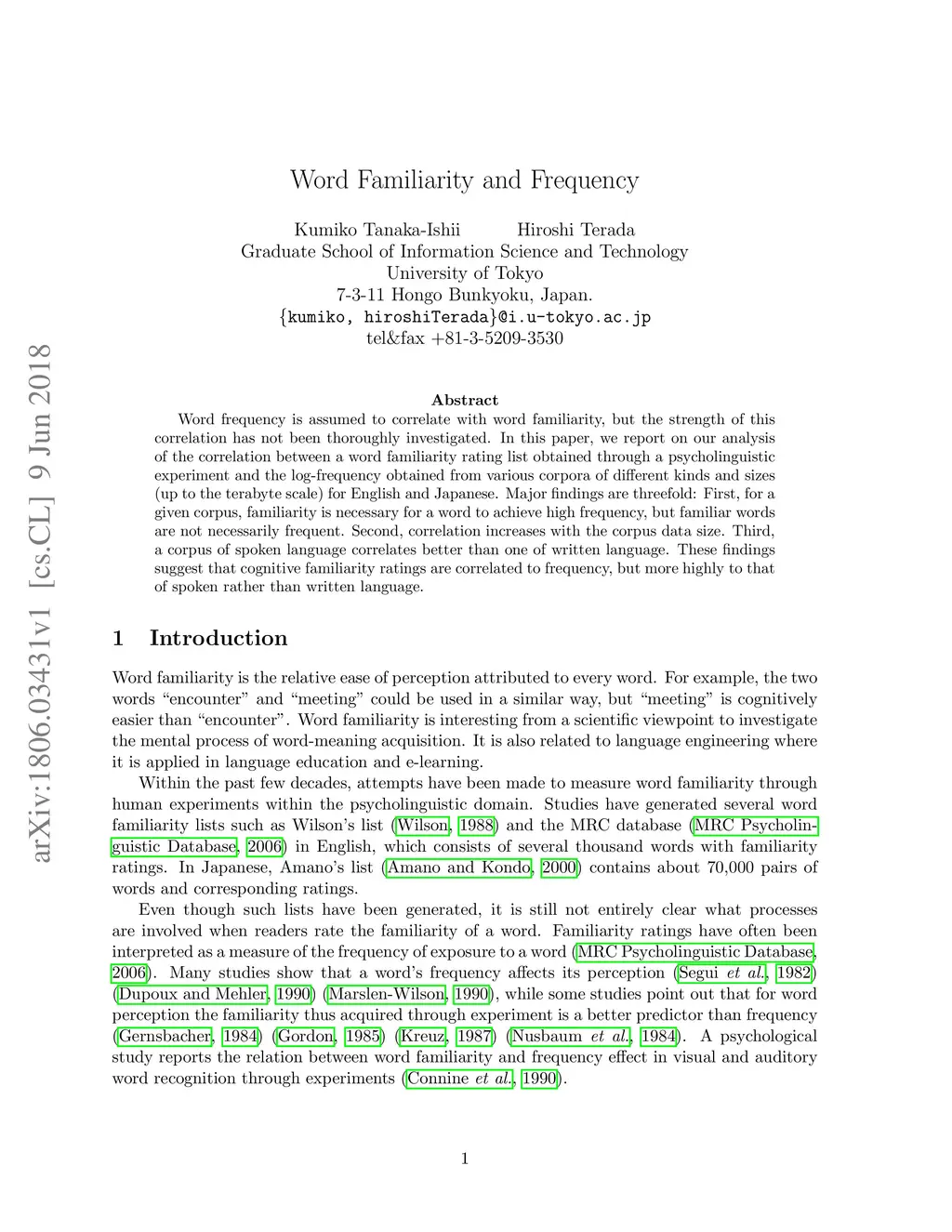 Word Familiarity and Frequency