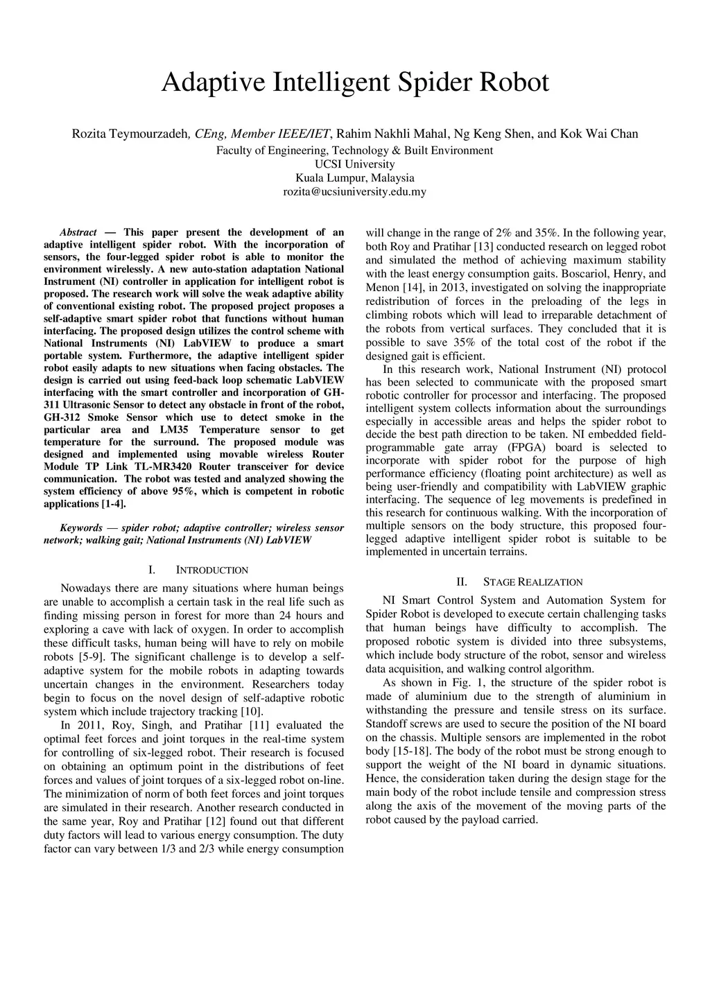 Adaptive Intelligent Spider Robot