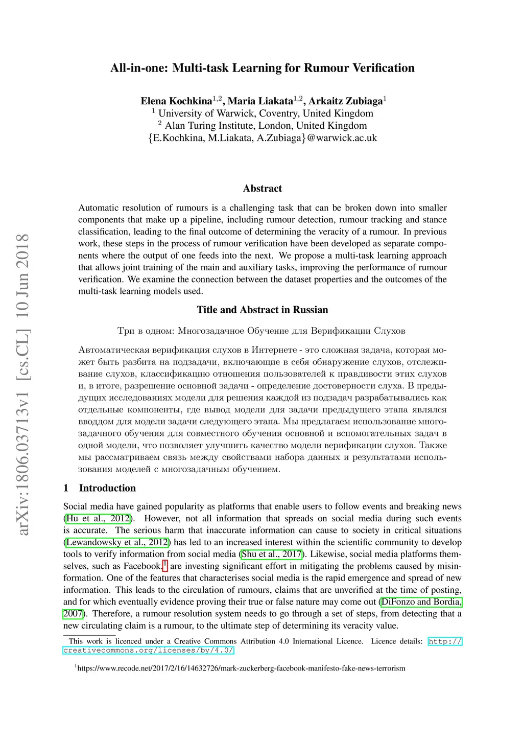 All-in-one: Multi-task Learning for Rumour Verification