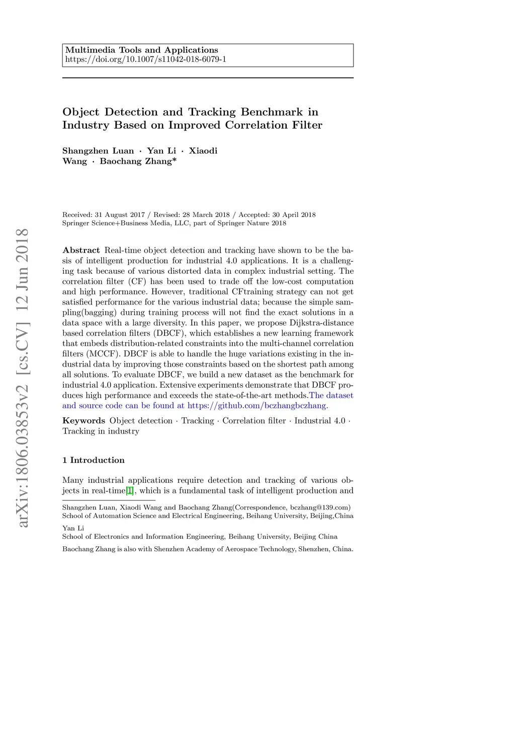Real-time object detection and tracking have shown to be the basis of intelligent production for industrial 4.0 applications. It is a challenging task because of various distorted data in complex industrial setting. The correlation filter (CF) has been used to trade off the low-cost computation and high performance. However, traditional CF training strategy can not get satisfied performance for the various industrial data; because the simple sampling(bagging) during training process will not find the exact solutions in a data space with a large diversity. In this paper, we propose Dijkstra-distance based correlation filters (DBCF), which establishes a new learning framework that embeds distribution-related constraints into the multi-channel correlation filters (MCCF). DBCF is able to handle the huge variations existing in the industrial data by improving those constraints based on the shortest path among all solutions. To evaluate DBCF, we build a new dataset as the benchmark for industrial 4.0 application. Extensive experiments demonstrate that DBCF produces high performance and exceeds the state-of-the-art methods. The dataset and source code can be found at https://github.com/bczhangbczhang