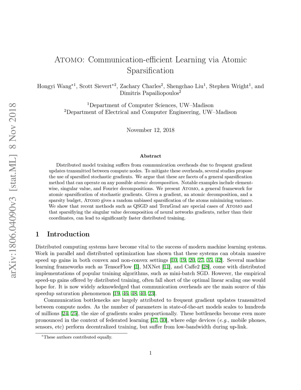 ATOMO: Communication-efficient Learning via Atomic Sparsification