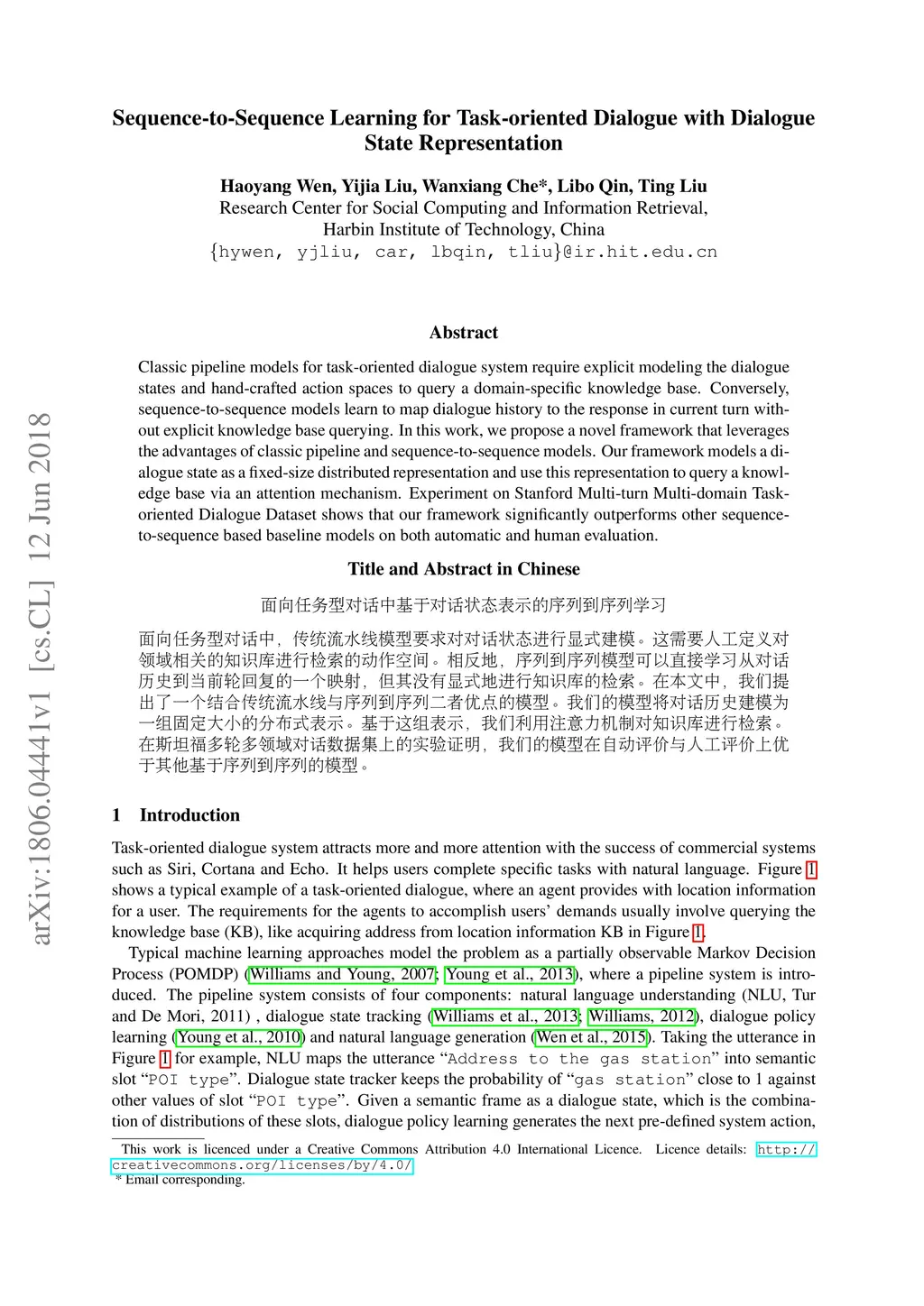 Sequence-to-Sequence Learning for Task-oriented Dialogue with Dialogue