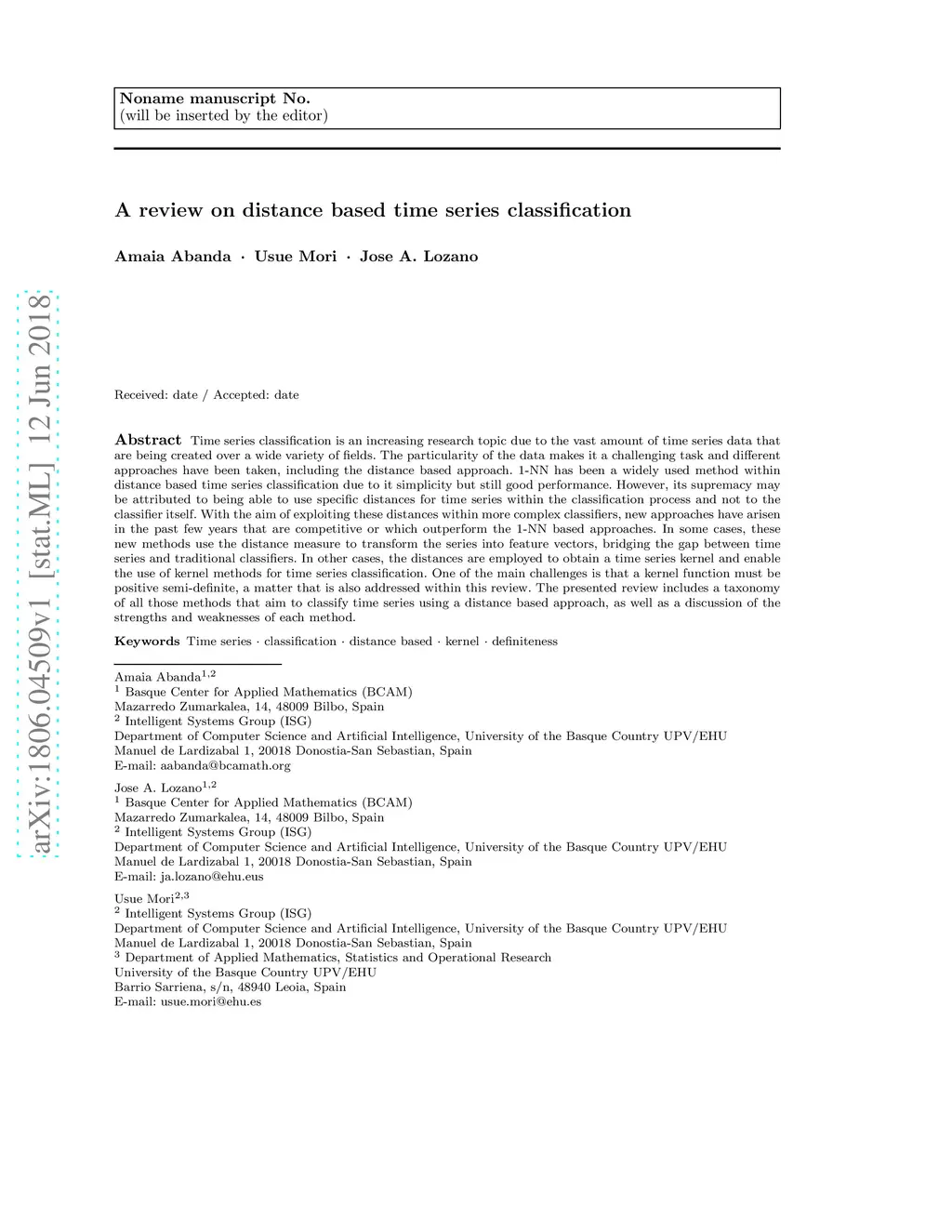 A review on distance based time series classification
