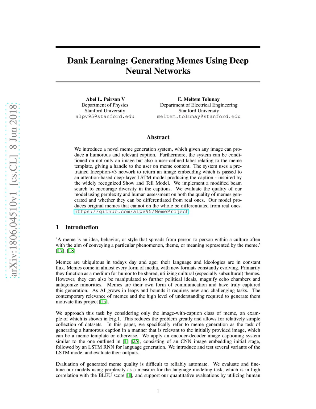 Dank Learning: Generating Memes Using Deep Neural Networks