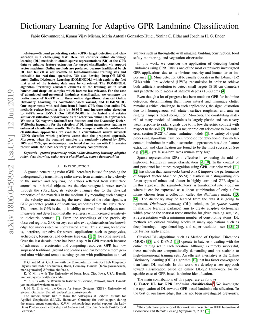 Dictionary Learning for Adaptive GPR Landmine Classification