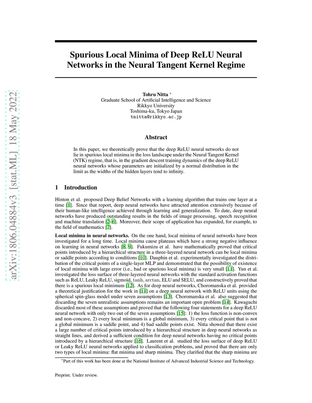 Spurious Local Minima of Deep ReLU Neural Networks in the Neural Tangent