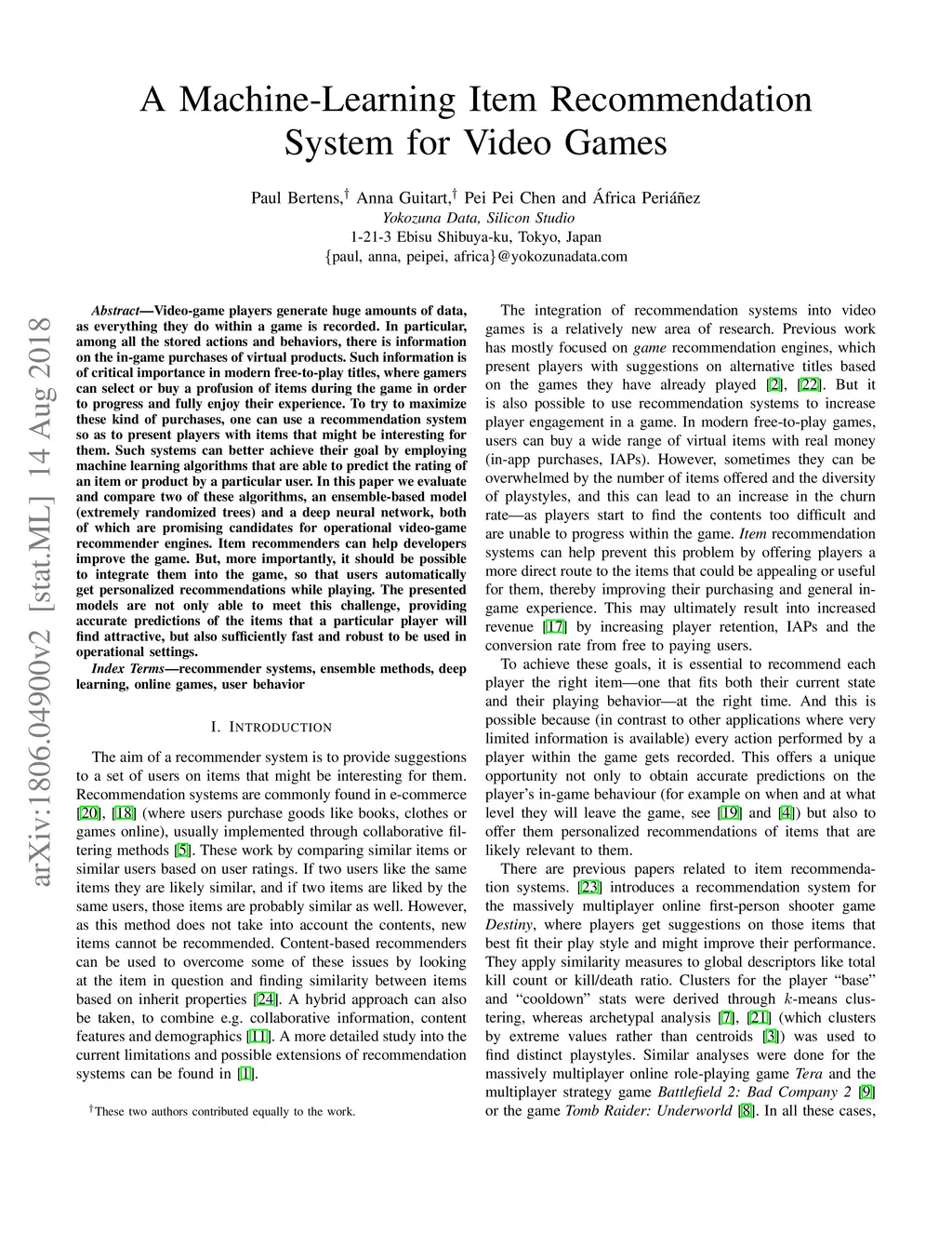 Video-game players generate huge amounts of data, as everything they do within a game is recorded. In particular, among all the stored actions and behaviors, there is information on the in-game purchases of virtual products. Such information is of critical importance in modern free-to-play titles, where gamers can select or buy a profusion of items during the game in order to progress and fully enjoy their experience. To try to maximize these kind of purchases, one can use a recommendation system so as to present players with items that might be interesting for them. Such systems can better achieve their goal by employing machine learning algorithms that are able to predict the rating of an item or product by a particular user. In this paper we evaluate and compare two of these algorithms, an ensemble-based model (extremely randomized trees) and a deep neural network, both of which are promising candidates for operational video-game recommender engines. Item recommenders can help developers improve the game. But, more importantly, it should be possible to integrate them into the game, so that users automatically get personalized recommendations while playing. The presented models are not only able to meet this challenge, providing accurate predictions of the items that a particular player will find attractive, but also sufficiently fast and robust to be used in operational settings.