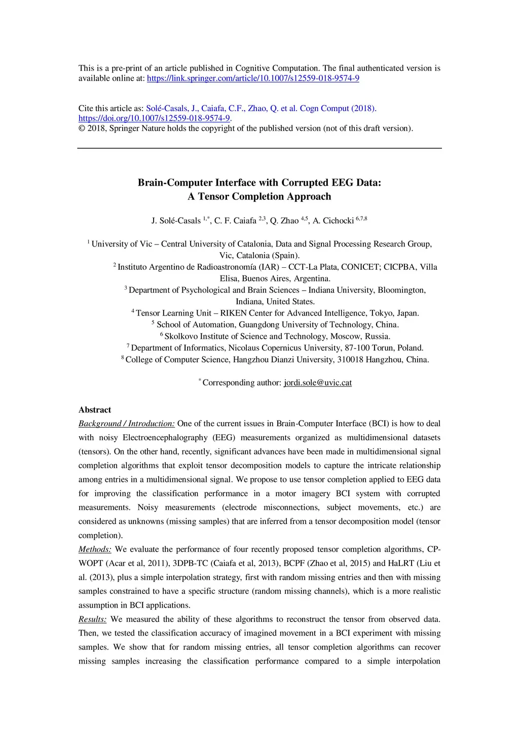 Brain-Computer Interface with Corrupted EEG Data: A Tensor Completion