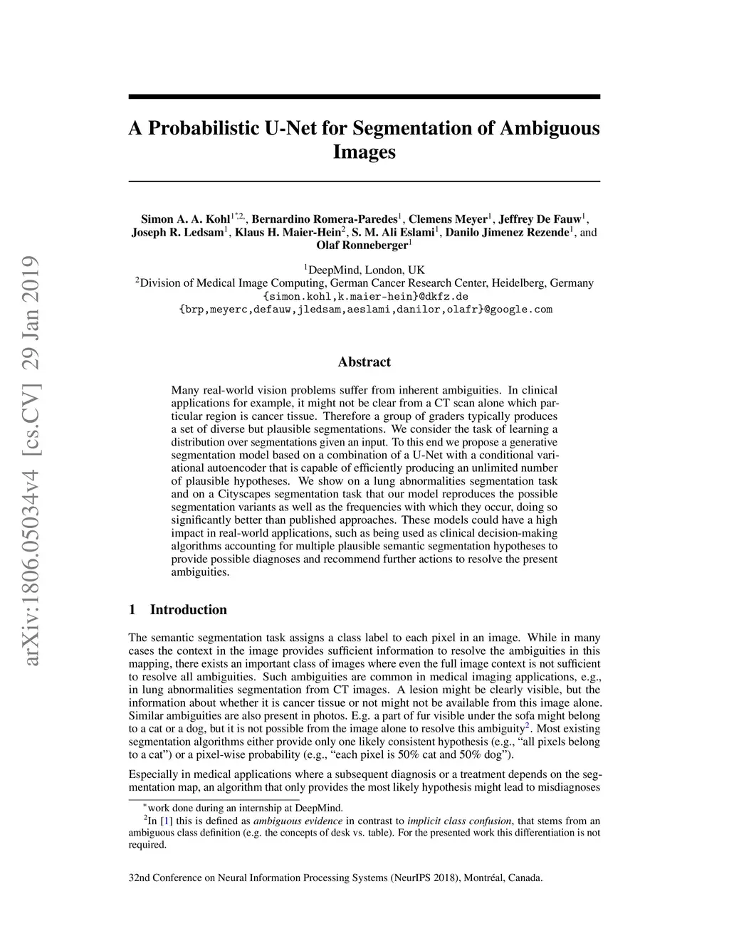 A Probabilistic U-Net for Segmentation of Ambiguous Images
