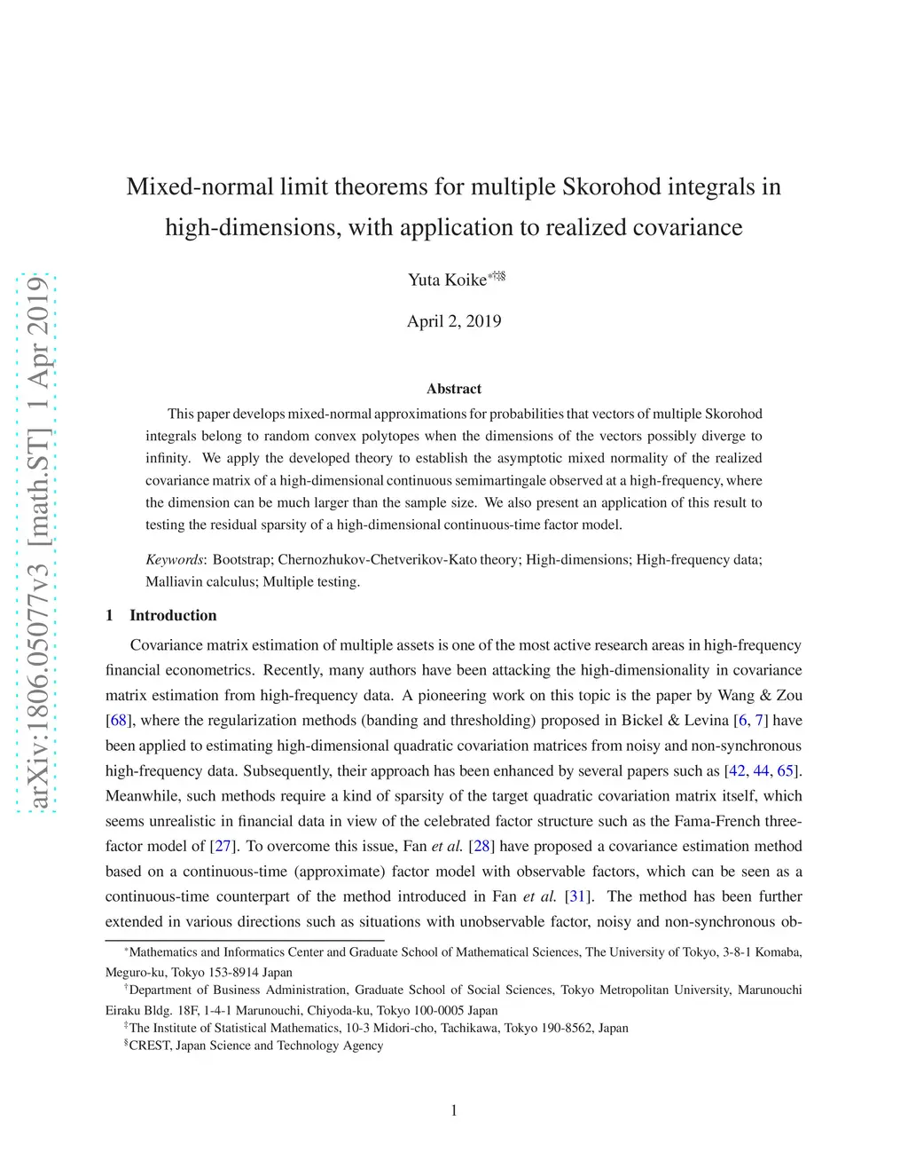 This paper develops mixed-normal approximations for probabilities that vectors of multiple Skorohod integrals belong to random convex polytopes when the dimensions of the vectors possibly diverge to infinity. We apply the developed theory to establish the asymptotic mixed normality of the realized covariance matrix of a high-dimensional continuous semimartingale observed at a high-frequency, where the dimension can be much larger than the sample size. We also present an application of this result to testing the residual sparsity of a high-dimensional continuous-time factor model.