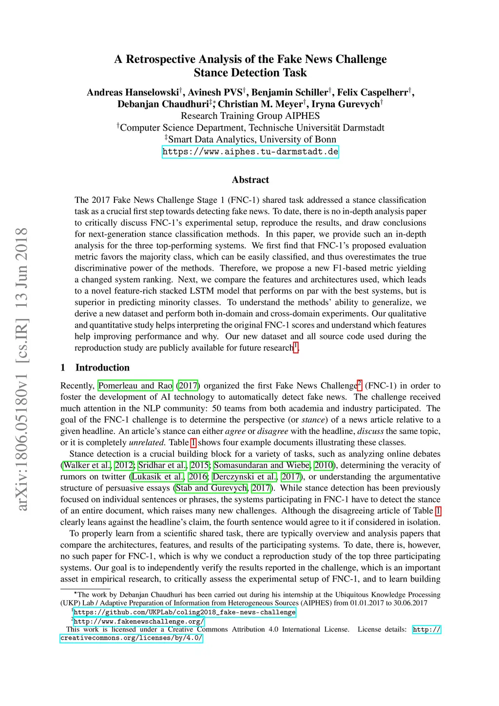 A Retrospective Analysis of the Fake News Challenge Stance Detection