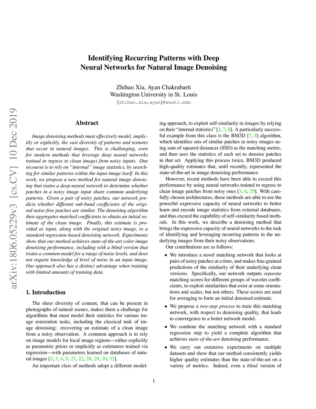 Image denoising methods must effectively model, implicitly or explicitly, the vast diversity of patterns and textures that occur in natural images. This is challenging, even for modern methods that leverage deep neural networks trained to regress to clean images from noisy inputs. One recourse is to rely on "internal" image statistics, by searching for similar patterns within the input image itself. In this work, we propose a new method for natural image denoising that trains a deep neural network to determine whether patches in a noisy image input share common underlying patterns. Given a pair of noisy patches, our network predicts whether different sub-band coefficients of the original noise-free patches are similar. The denoising algorithm then aggregates matched coefficients to obtain an initial estimate of the clean image. Finally, this estimate is provided as input, along with the original noisy image, to a standard regression-based denoising network. Experiments show that our method achieves state-of-the-art color image denoising performance, including with a blind version that trains a common model for a range of noise levels, and does not require knowledge of level of noise in an input image. Our approach also has a distinct advantage when training with limited amounts of training data.