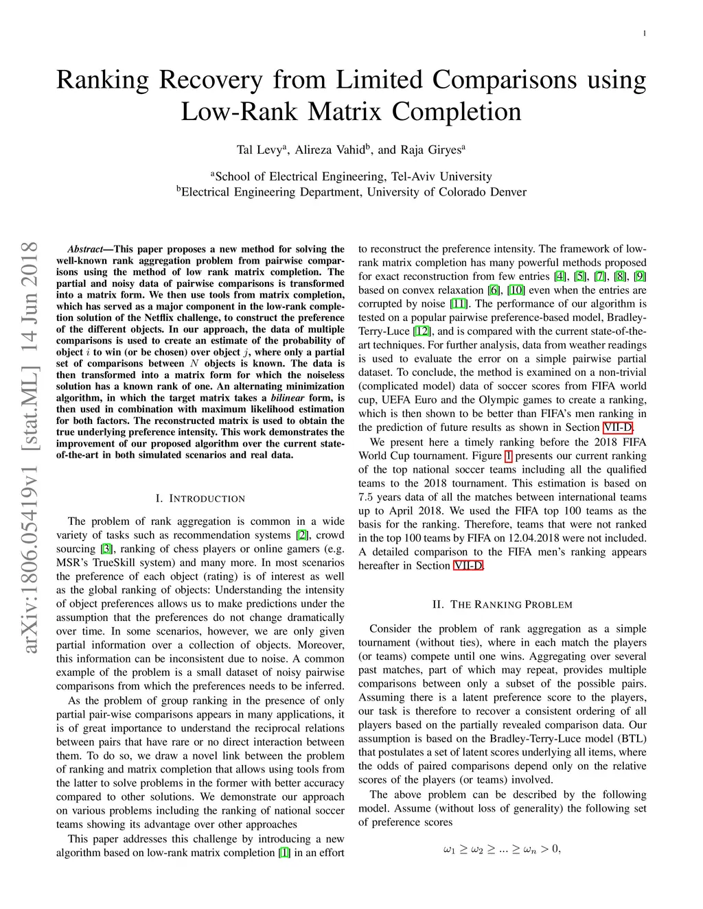 Ranking Recovery from Limited Comparisons using Low-Rank Matrix