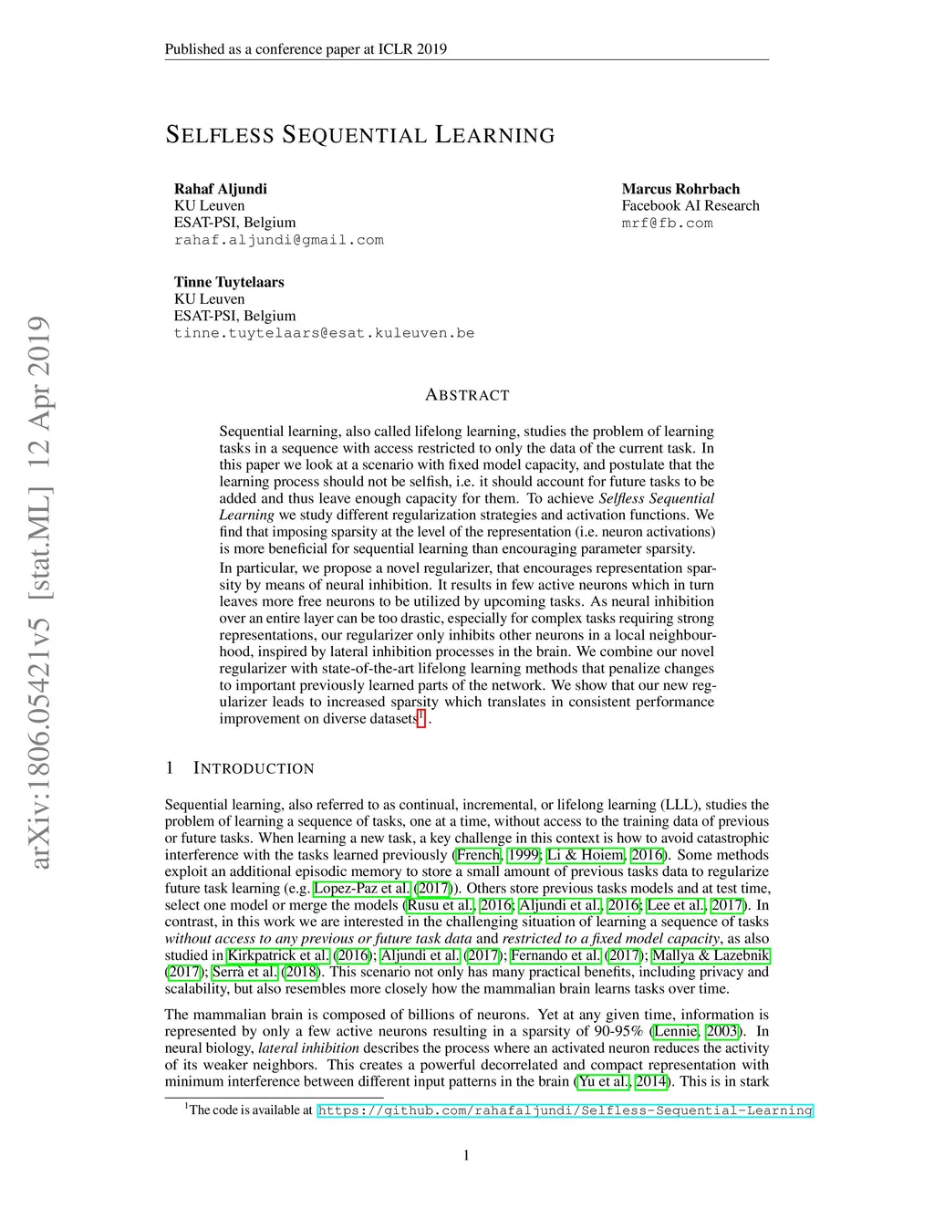 Selfless Sequential Learning
