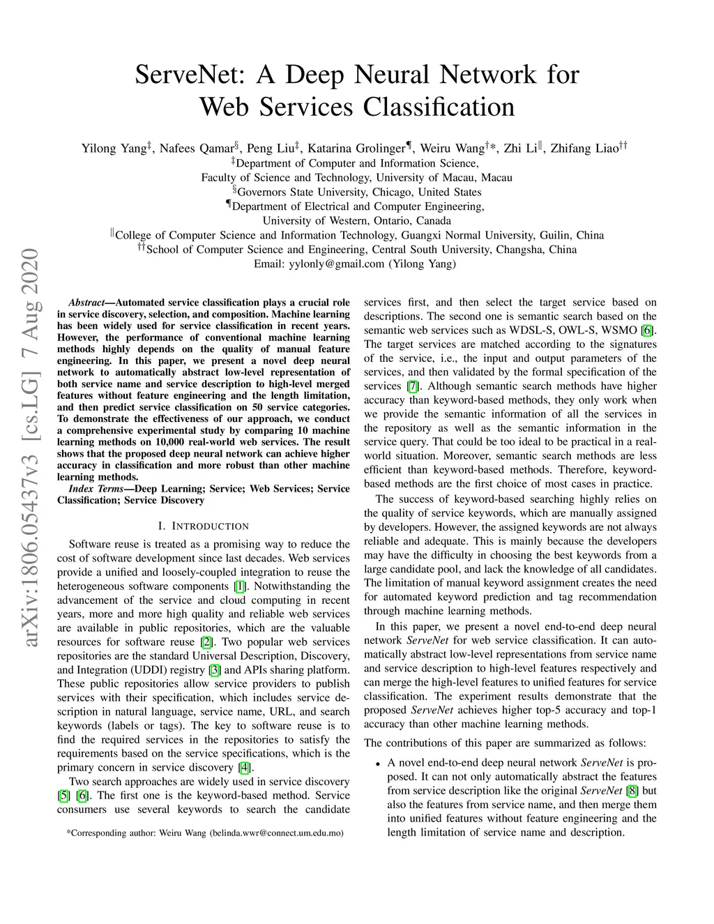ServeNet: A Deep Neural Network for Web Services Classification