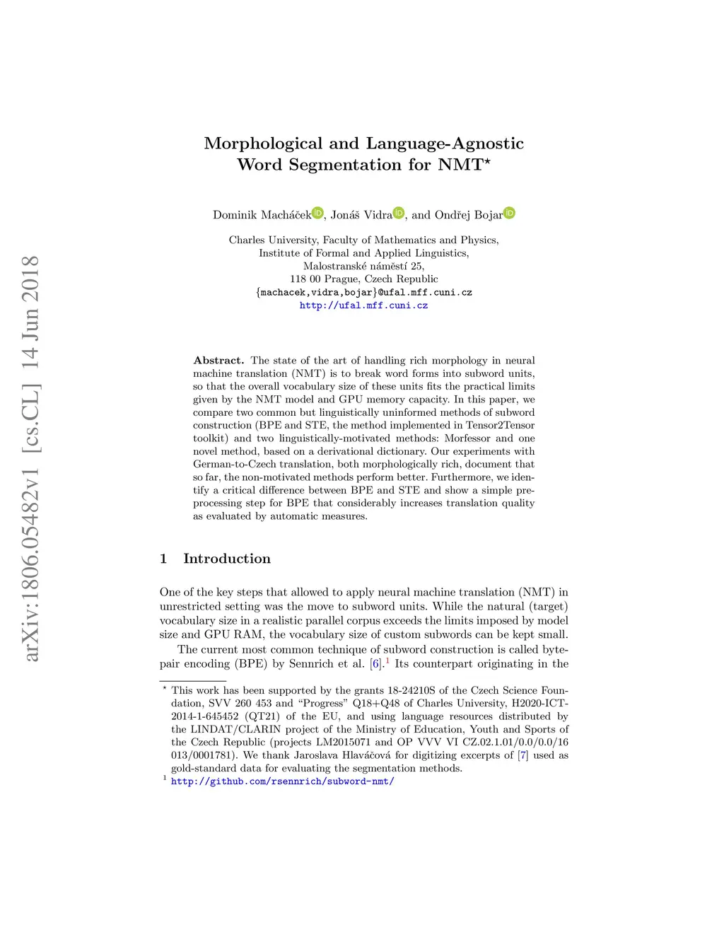 Morphological and Language-Agnostic Word Segmentation for NMT