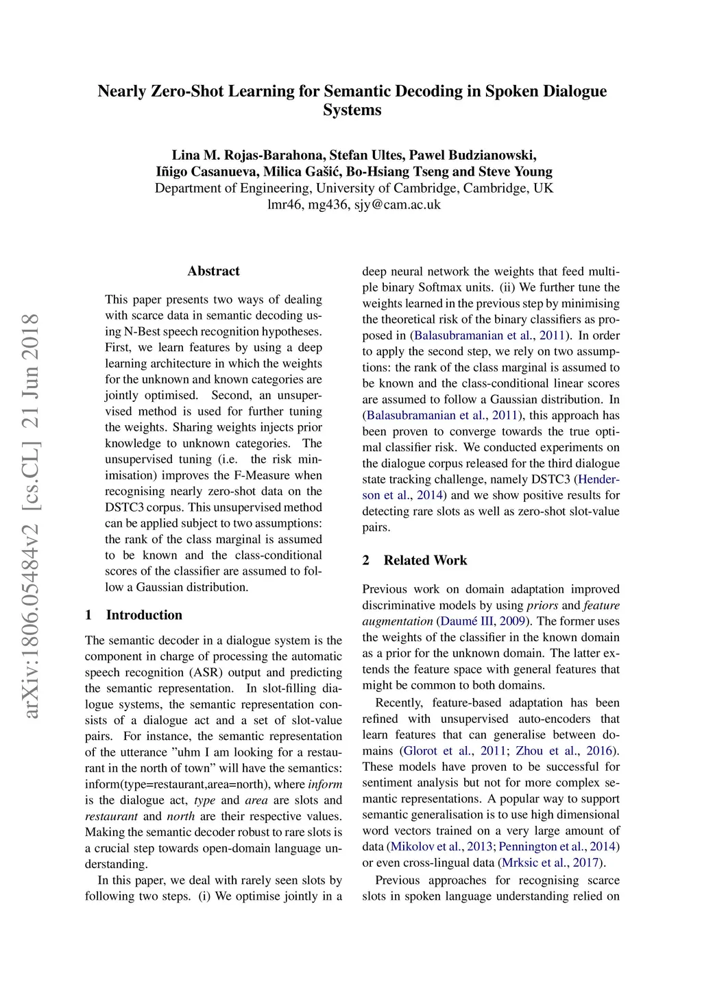 This paper presents two ways of dealing with scarce data in semantic decoding using N-Best speech recognition hypotheses. First, we learn features by using a deep learning architecture in which the weights for the unknown and known categories are jointly optimised. Second, an unsupervised method is used for further tuning the weights. Sharing weights injects prior knowledge to unknown categories. The unsupervised tuning (i.e. the risk minimisation) improves the F-Measure when recognising nearly zero-shot data on the DSTC3 corpus. This unsupervised method can be applied subject to two assumptions: the rank of the class marginal is assumed to be known and the class-conditional scores of the classifier are assumed to follow a Gaussian distribution.