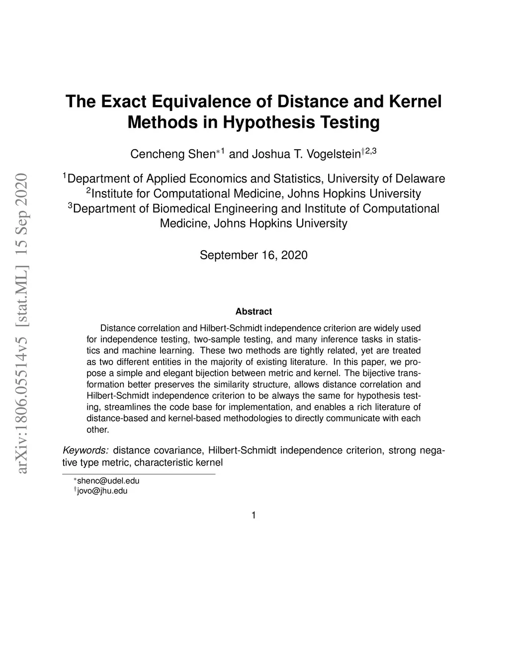 The Exact Equivalence of Distance and Kernel Methods for Hypothesis