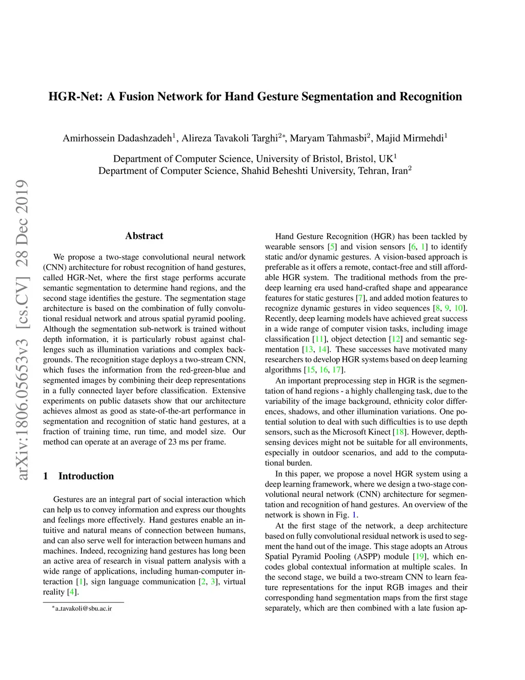 HGR-Net: A Fusion Network for Hand Gesture Segmentation and Recognition