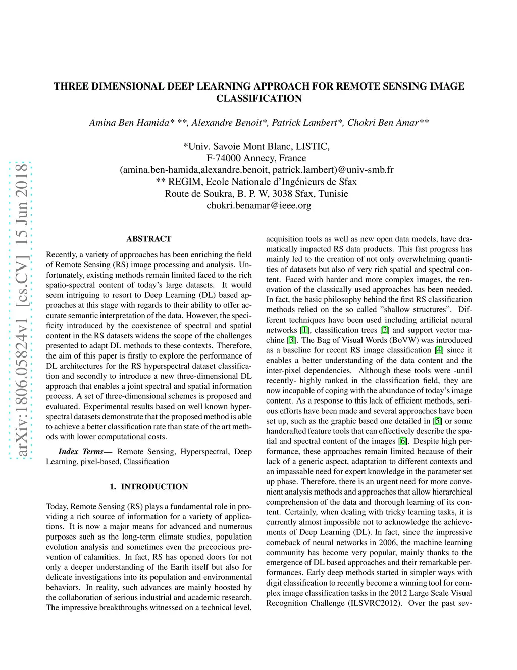 Three dimensional Deep Learning approach for remote sensing image