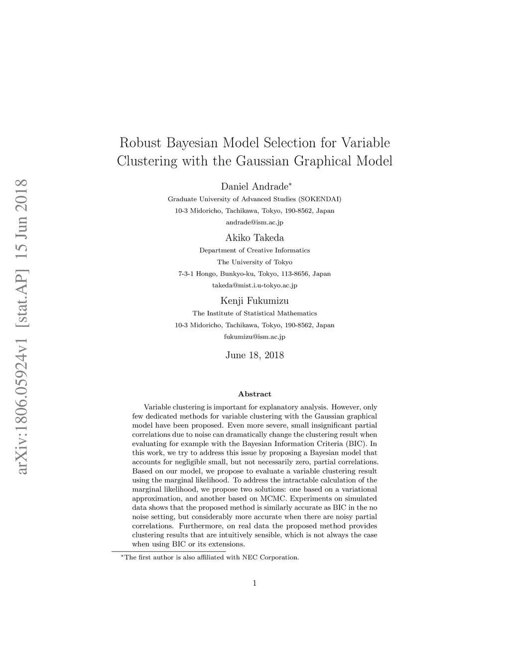 Variable clustering is important for explanatory analysis. However, only few dedicated methods for variable clustering with the Gaussian graphical model have been proposed. Even more severe, small insignificant partial correlations due to noise can dramatically change the clustering result when evaluating for example with the Bayesian Information Criteria (BIC). In this work, we try to address this issue by proposing a Bayesian model that accounts for negligible small, but not necessarily zero, partial correlations. Based on our model, we propose to evaluate a variable clustering result using the marginal likelihood. To address the intractable calculation of the marginal likelihood, we propose two solutions: one based on a variational approximation, and another based on MCMC. Experiments on simulated data shows that the proposed method is similarly accurate as BIC in the no noise setting, but considerably more accurate when there are noisy partial correlations. Furthermore, on real data the proposed method provides clustering results that are intuitively sensible, which is not always the case when using BIC or its extensions.