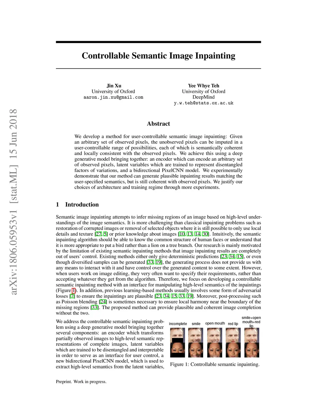 Controllable Semantic Image Inpainting