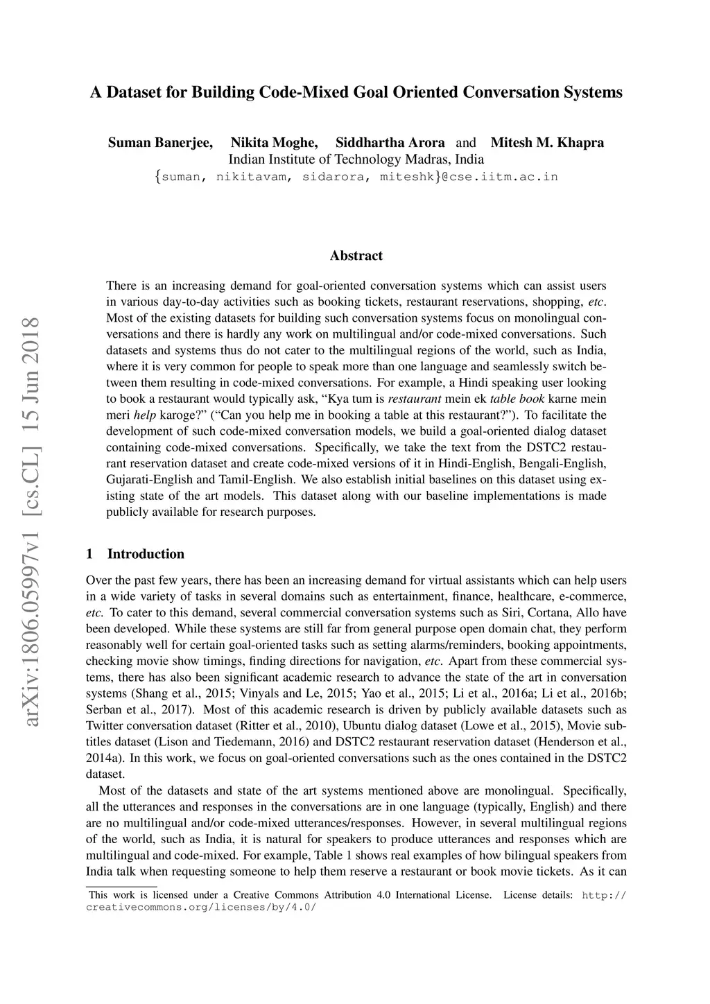 A Dataset for Building Code-Mixed Goal Oriented Conversation Systems