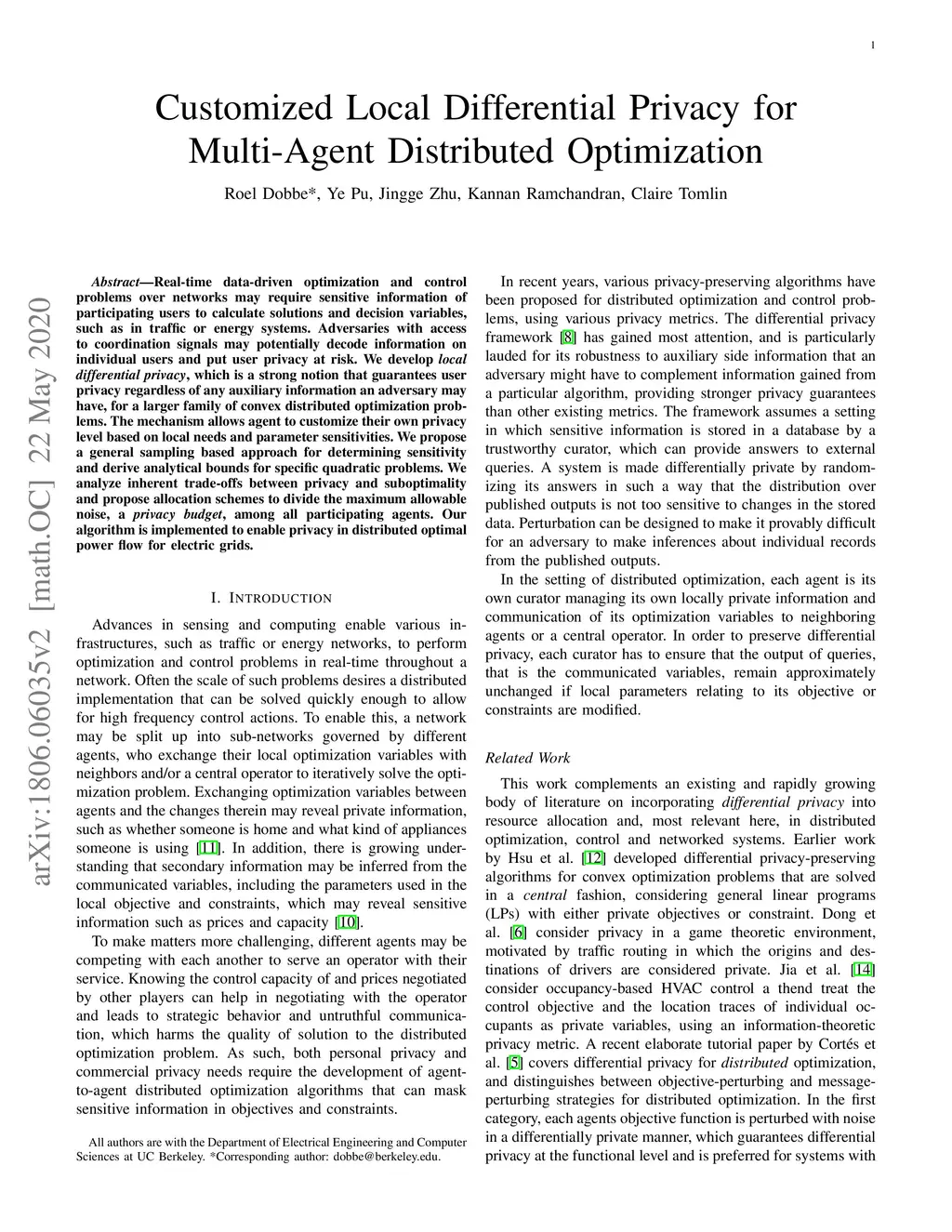 Real-time data-driven optimization and control problems over networks may require sensitive information of participating users to calculate solutions and decision variables, such as in traffic or energy systems. Adversaries with access to coordination signals may potentially decode information on individual users and put user privacy at risk. We develop local differential privacy, which is a strong notion that guarantees user privacy regardless of any auxiliary information an adversary may have, for a larger family of convex distributed optimization problems. The mechanism allows agent to customize their own privacy level based on local needs and parameter sensitivities. We propose a general sampling based approach for determining sensitivity and derive analytical bounds for specific quadratic problems. We analyze inherent trade-offs between privacy and suboptimality and propose allocation schemes to divide the maximum allowable noise, a privacy budget, among all participating agents. Our algorithm is implemented to enable privacy in distributed optimal power flow for electric grids.