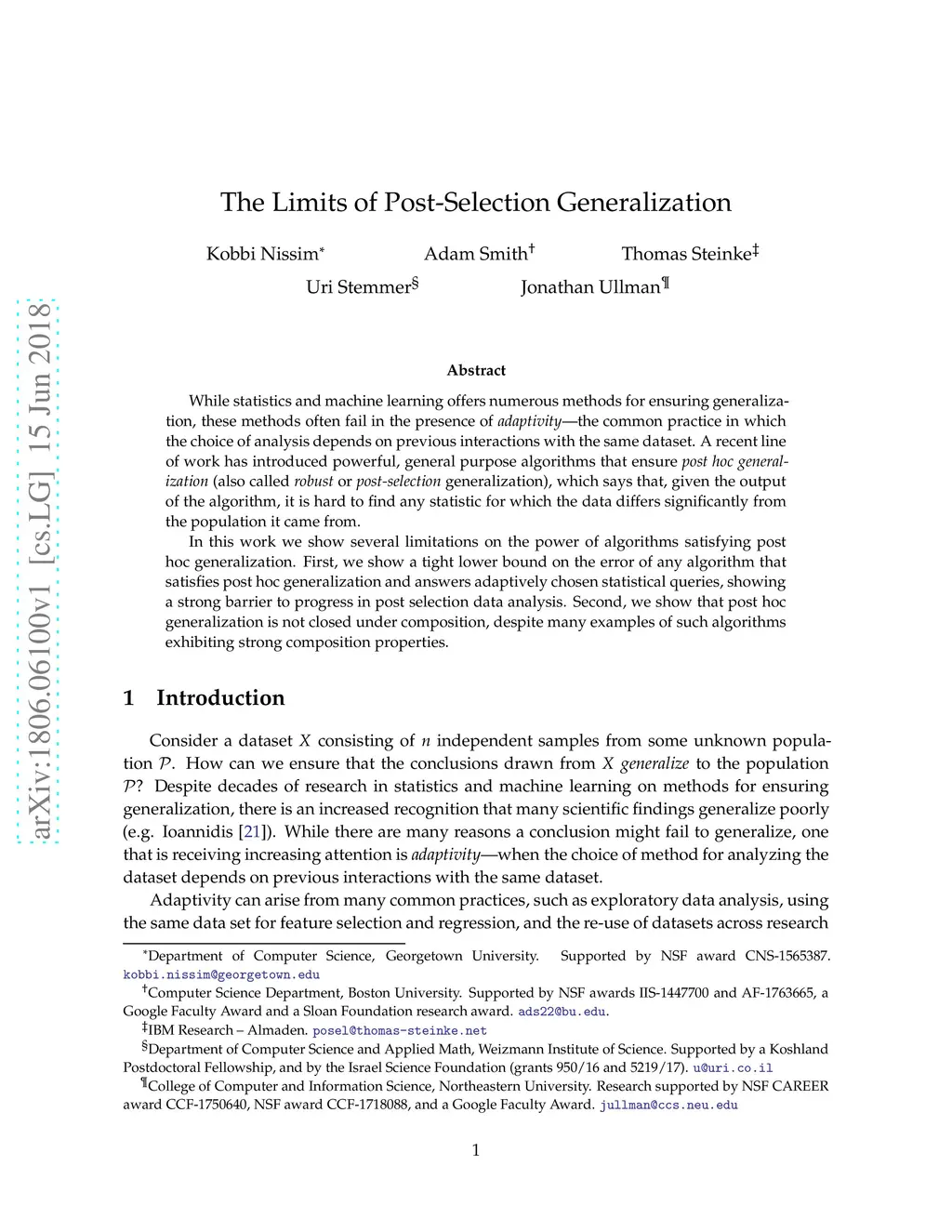 While statistics and machine learning offers numerous methods for ensuring generalization, these methods often fail in the presence of adaptivity---the common practice in which the choice of analysis depends on previous interactions with the same dataset. A recent line of work has introduced powerful, general purpose algorithms that ensure post hoc generalization (also called robust or post-selection generalization), which says that, given the output of the algorithm, it is hard to find any statistic for which the data differs significantly from the population it came from. In this work we show several limitations on the power of algorithms satisfying post hoc generalization. First, we show a tight lower bound on the error of any algorithm that satisfies post hoc generalization and answers adaptively chosen statistical queries, showing a strong barrier to progress in post selection data analysis. Second, we show that post hoc generalization is not closed under composition, despite many examples of such algorithms exhibiting strong composition properties.