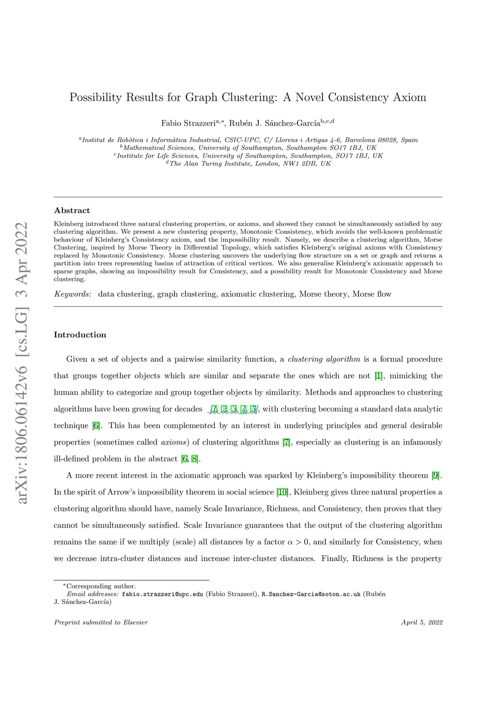 Kleinberg introduced three natural clustering properties, or axioms, and showed they cannot be simultaneously satisfied by any clustering algorithm. We present a new clustering property, Monotonic Consistency, which avoids the well-known problematic behaviour of Kleinberg's Consistency axiom, and the impossibility result. Namely, we describe a clustering algorithm, Morse Clustering, inspired by Morse Theory in Differential Topology, which satisfies Kleinberg's original axioms with Consistency replaced by Monotonic Consistency. Morse clustering uncovers the underlying flow structure on a set or graph and returns a partition into trees representing basins of attraction of critical vertices. We also generalise Kleinberg's axiomatic approach to sparse graphs, showing an impossibility result for Consistency, and a possibility result for Monotonic Consistency and Morse clustering.