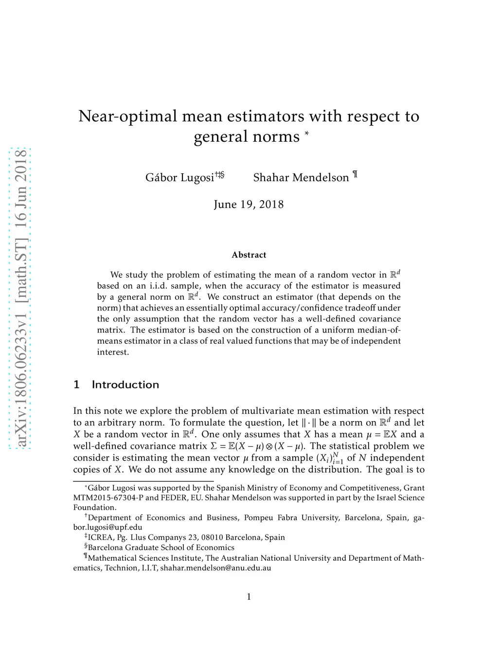 We study the problem of estimating the mean of a random vector in based on an i.i.d.\ sample, when the accuracy of the estimator is measured by a general norm on . We construct an estimator (that depends on the norm) that achieves an essentially optimal accuracy/confidence tradeoff under the only assumption that the random vector has a well-defined covariance matrix. The estimator is based on the construction of a uniform median-of-means estimator in a class of real valued functions that may be of independent interest.