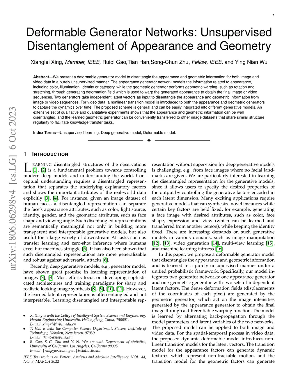 Deformable Generator Networks: Unsupervised Disentanglement of