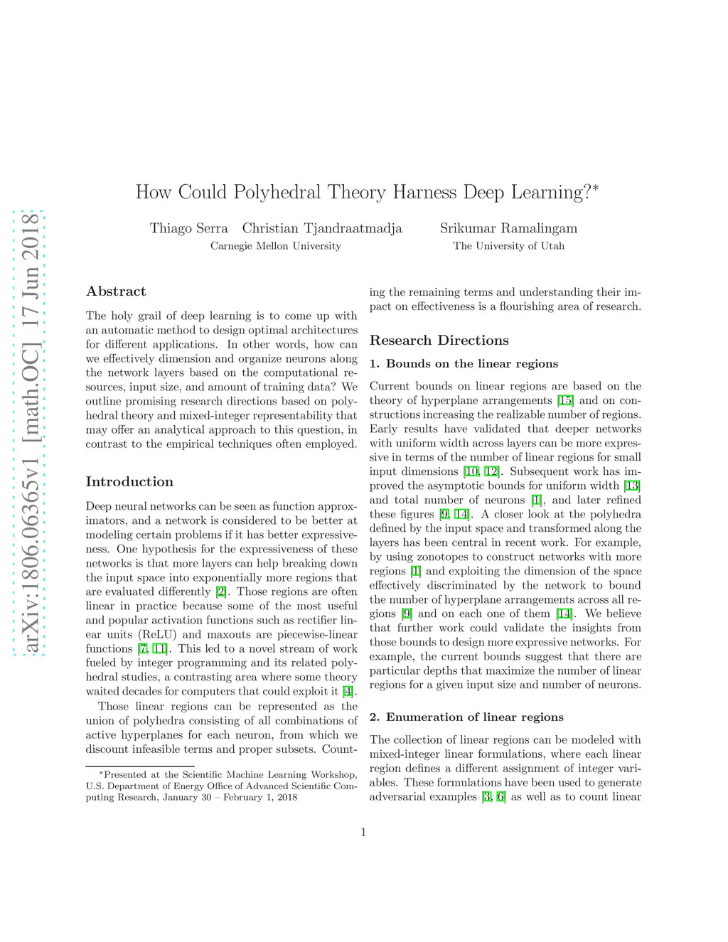 The holy grail of deep learning is to come up with an automatic method to design optimal architectures for different applications. In other words, how can we effectively dimension and organize neurons along the network layers based on the computational resources, input size, and amount of training data? We outline promising research directions based on polyhedral theory and mixed-integer representability that may offer an analytical approach to this question, in contrast to the empirical techniques often employed.