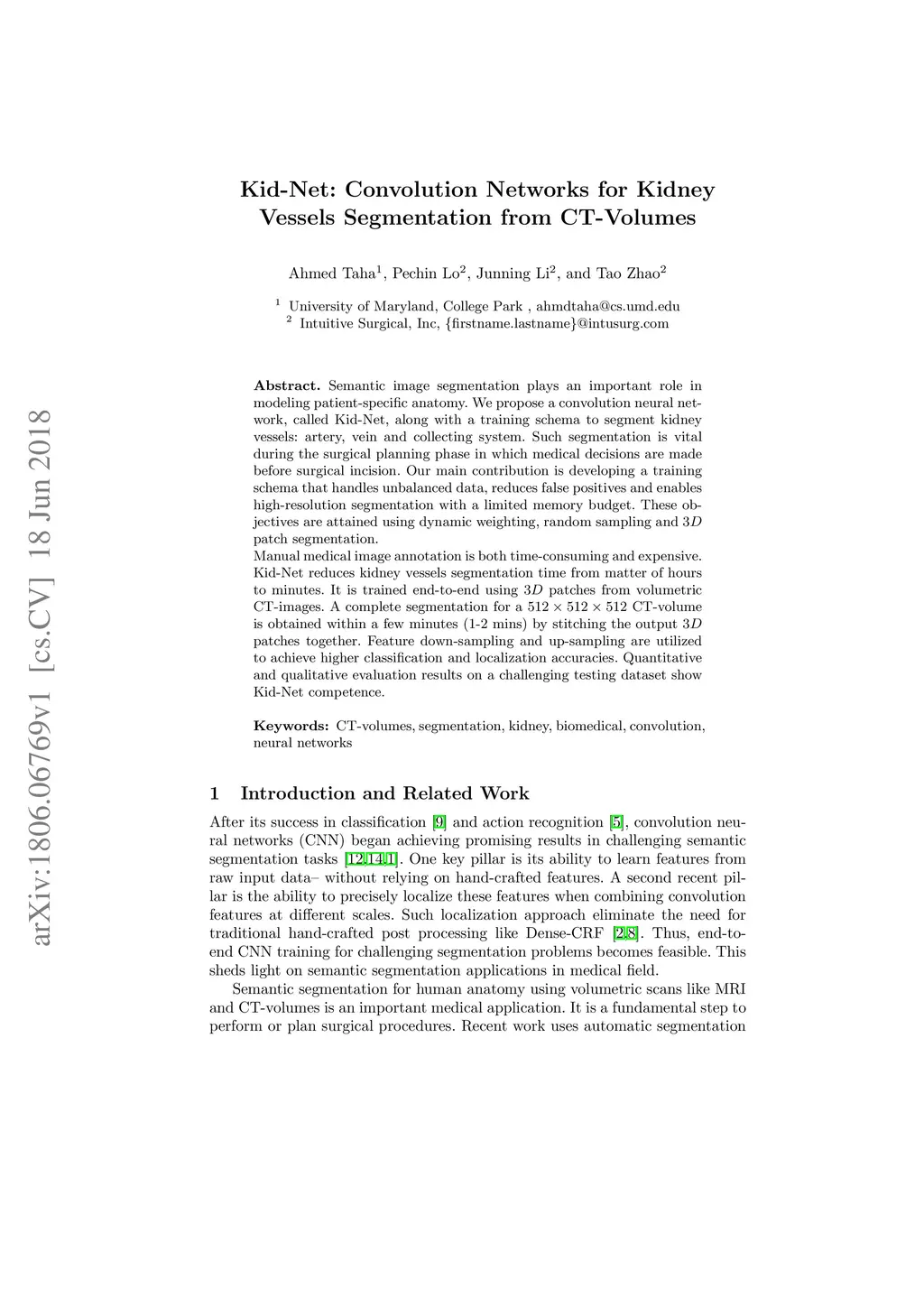 Kid-Net: Convolution Networks for Kidney Vessels Segmentation from