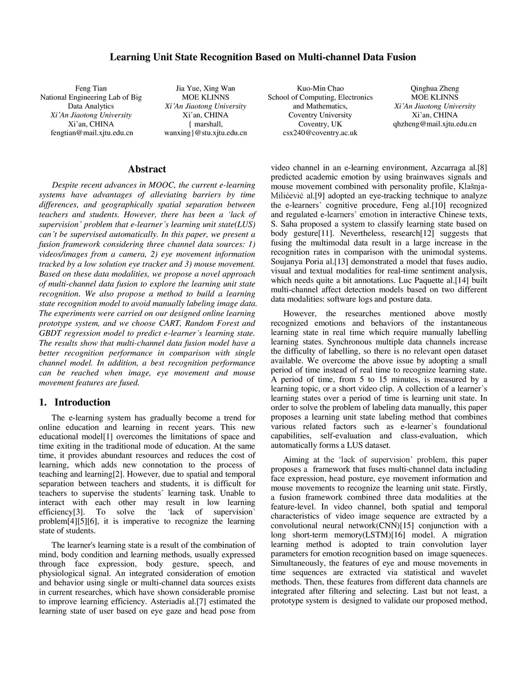 Learning Unit State Recognition Based on Multi-channel Data Fusion