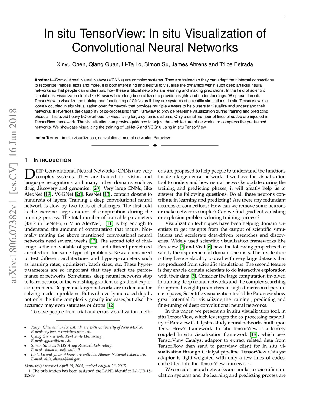 Convolutional Neural Networks(CNNs) are complex systems. They are trained so they can adapt their internal connections to recognize images, texts and more. It is both interesting and helpful to visualize the dynamics within such deep artificial neural networks so that people can understand how these artificial networks are learning and making predictions. In the field of scientific simulations, visualization tools like Paraview have long been utilized to provide insights and understandings. We present in situ TensorView to visualize the training and functioning of CNNs as if they are systems of scientific simulations. In situ TensorView is a loosely coupled in situ visualization open framework that provides multiple viewers to help users to visualize and understand their networks. It leverages the capability of co-processing from Paraview to provide real-time visualization during training and predicting phases. This avoid heavy I/O overhead for visualizing large dynamic systems. Only a small number of lines of codes are injected in TensorFlow framework. The visualization can provide guidance to adjust the architecture of networks, or compress the pre-trained networks. We showcase visualizing the training of LeNet-5 and VGG16 using in situ TensorView.