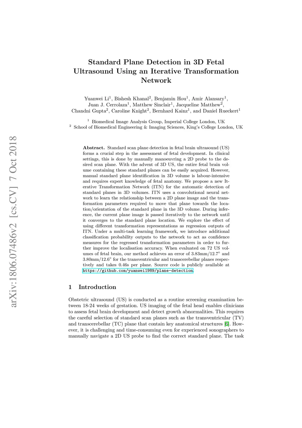 Standard Plane Detection in 3D Fetal Ultrasound Using an Iterative