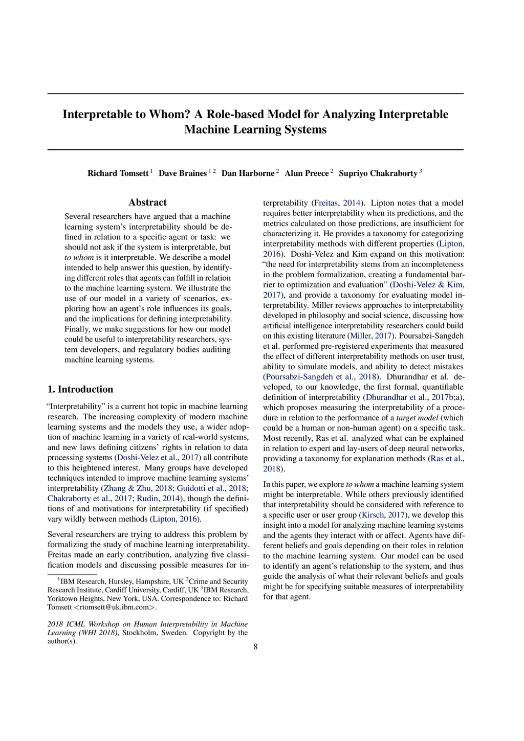 Several researchers have argued that a machine learning system's interpretability should be defined in relation to a specific agent or task: we should not ask if the system is interpretable, but to whom is it interpretable. We describe a model intended to help answer this question, by identifying different roles that agents can fulfill in relation to the machine learning system. We illustrate the use of our model in a variety of scenarios, exploring how an agent's role influences its goals, and the implications for defining interpretability. Finally, we make suggestions for how our model could be useful to interpretability researchers, system developers, and regulatory bodies auditing machine learning systems.