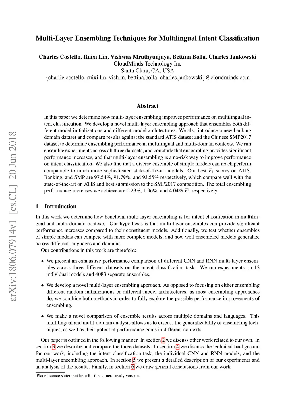 Multi-Layer Ensembling Techniques for Multilingual Intent Classification