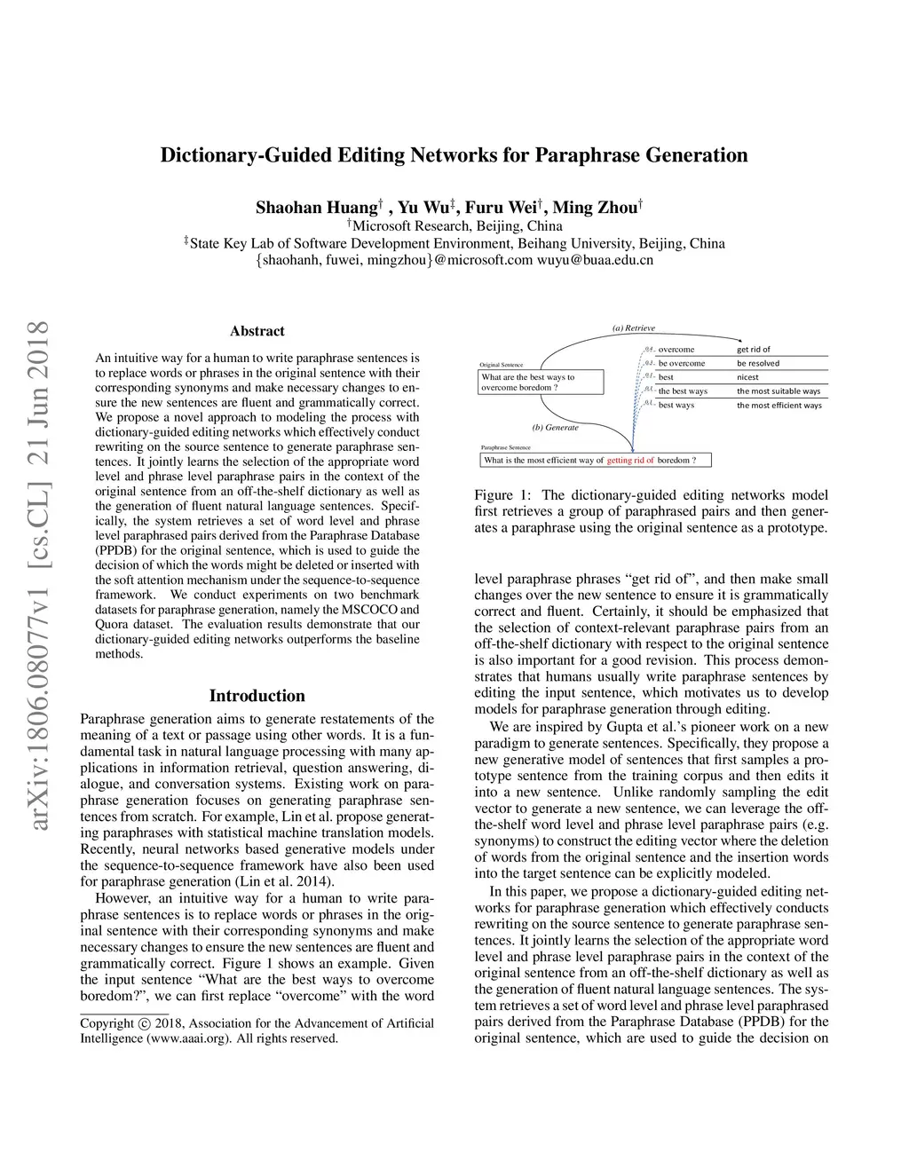 Dictionary-Guided Editing Networks for Paraphrase Generation