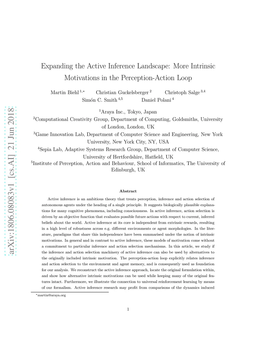 Active inference is an ambitious theory that treats perception, inference and action selection of autonomous agents under the heading of a single principle. It suggests biologically plausible explanations for many cognitive phenomena, including consciousness. In active inference, action selection is driven by an objective function that evaluates possible future actions with respect to current, inferred beliefs about the world. Active inference at its core is independent from extrinsic rewards, resulting in a high level of robustness across e.g.\ different environments or agent morphologies. In the literature, paradigms that share this independence have been summarised under the notion of intrinsic motivations. In general and in contrast to active inference, these models of motivation come without a commitment to particular inference and action selection mechanisms. In this article, we study if the inference and action selection machinery of active inference can also be used by alternatives to the originally included intrinsic motivation. The perception-action loop explicitly relates inference and action selection to the environment and agent memory, and is consequently used as foundation for our analysis. We reconstruct the active inference approach, locate the original formulation within, and show how alternative intrinsic motivations can be used while keeping many of the original features intact. Furthermore, we illustrate the connection to universal reinforcement learning by means of our formalism. Active inference research may profit from comparisons of the dynamics induced by alternative intrinsic motivations. Research on intrinsic motivations may profit from an additional way to implement intrinsically motivated agents that also share the biological plausibility of active inference.