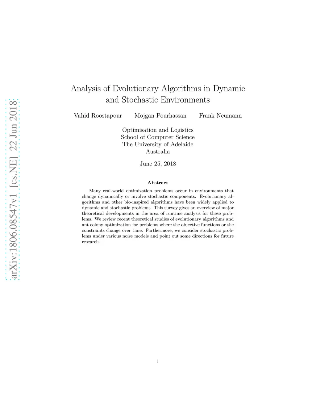 Analysis of Evolutionary Algorithms in Dynamic and Stochastic