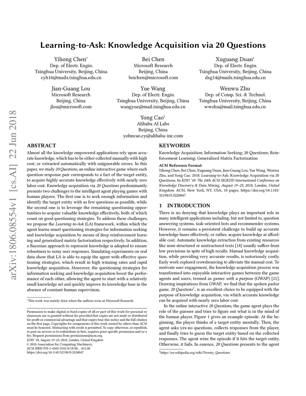 Learning-to-Ask: Knowledge Acquisition via 20 Questions