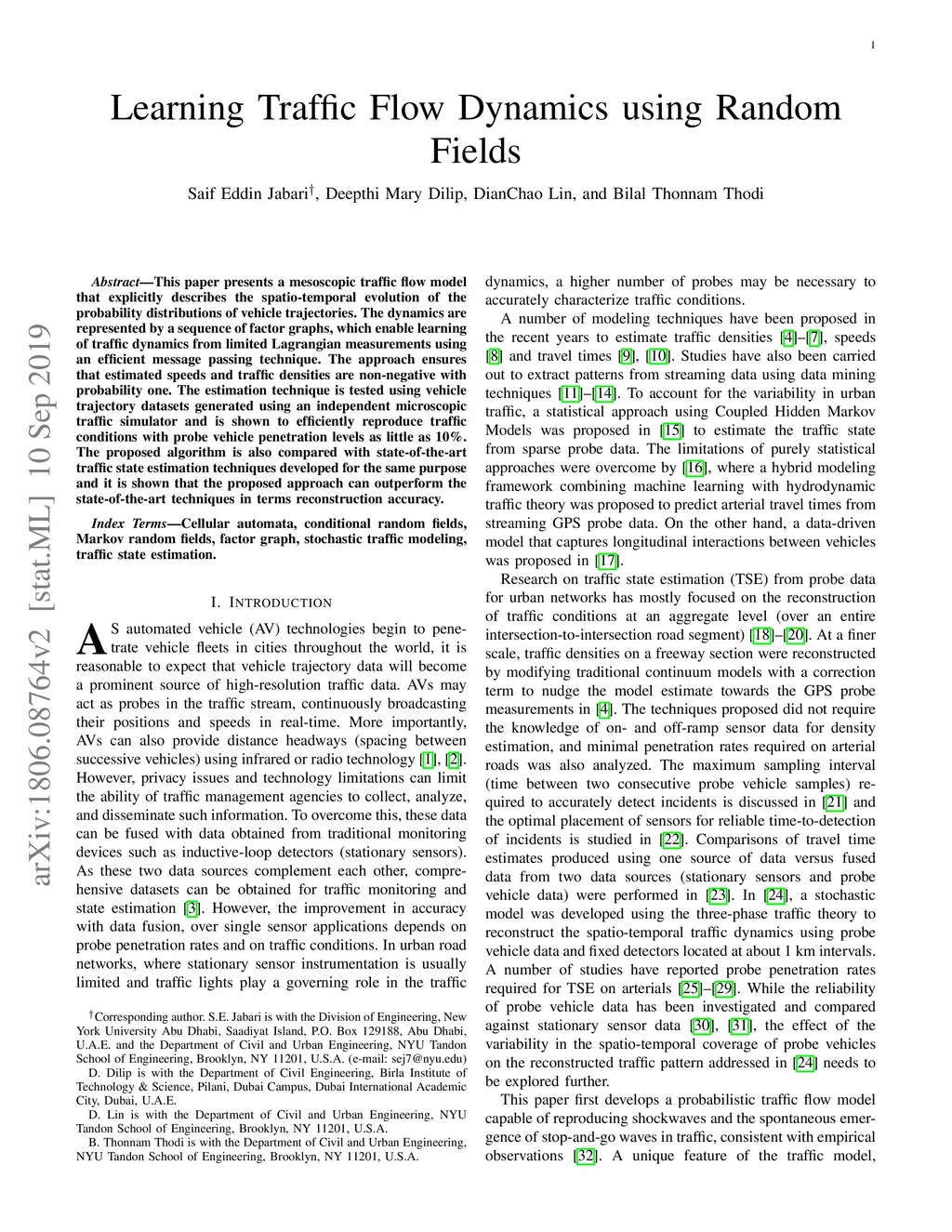 Learning Traffic Flow Dynamics using Random Fields