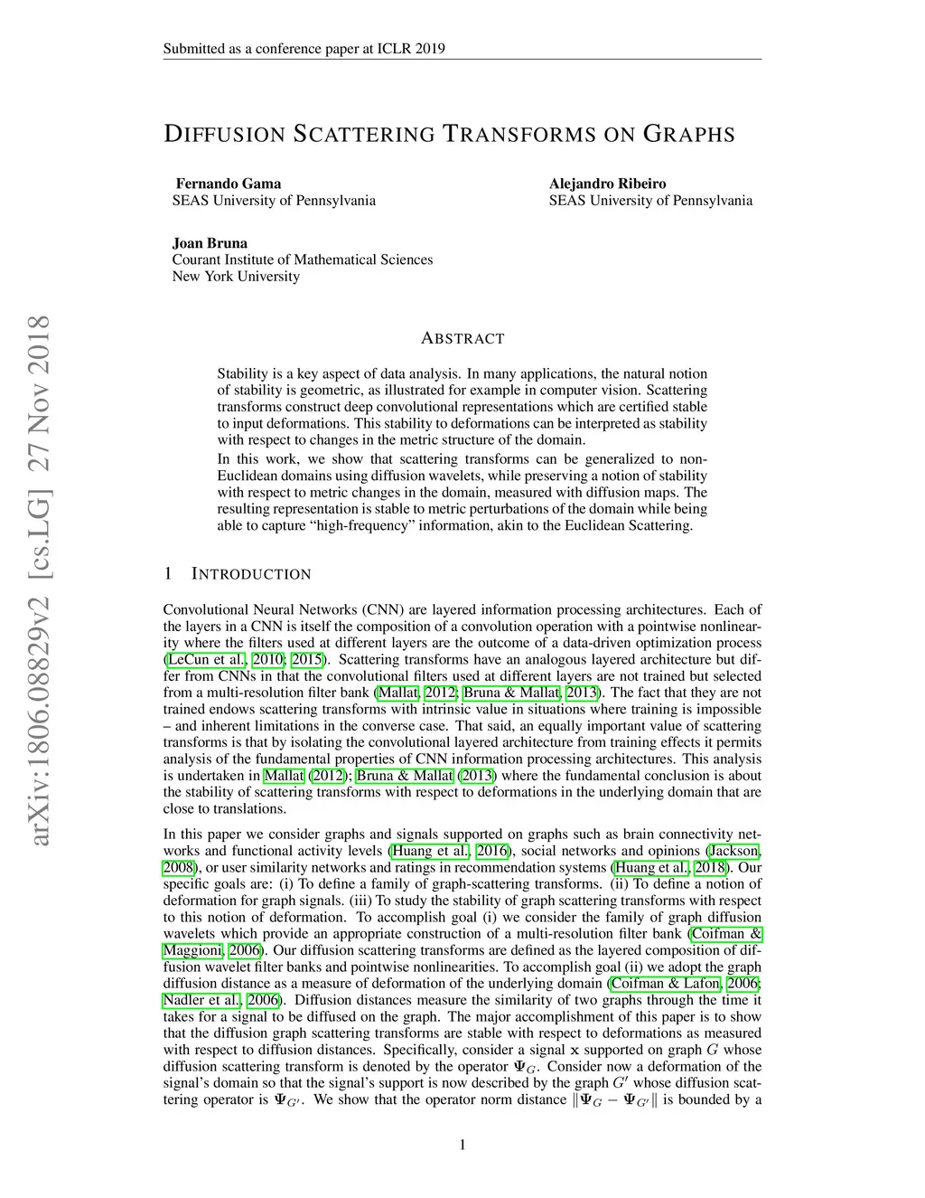 Diffusion Scattering Transforms on Graphs