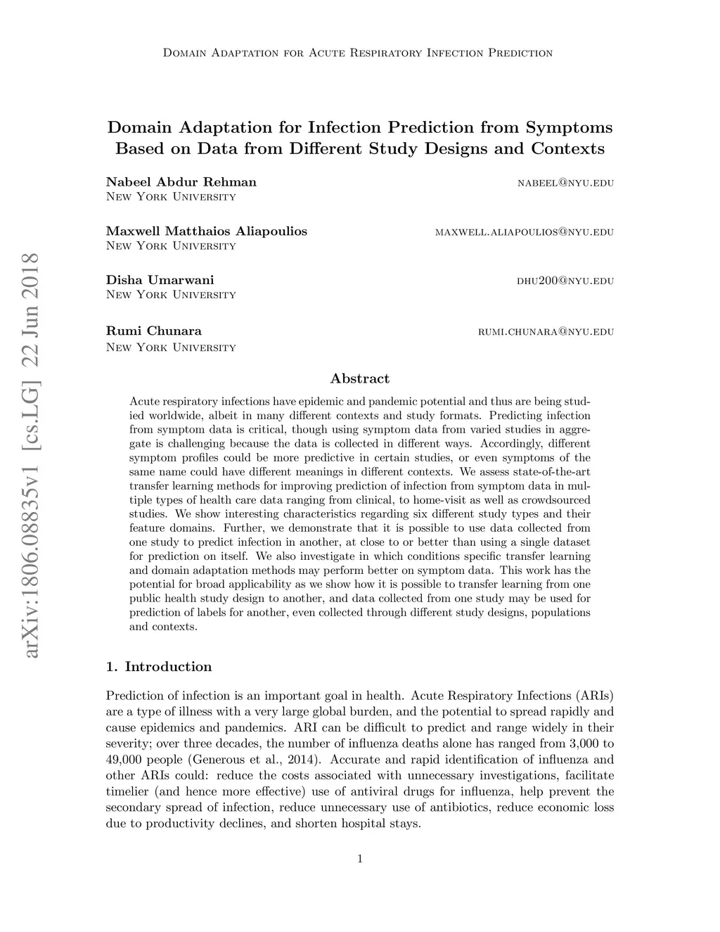 Domain Adaptation for Infection Prediction from Symptoms Based on Data