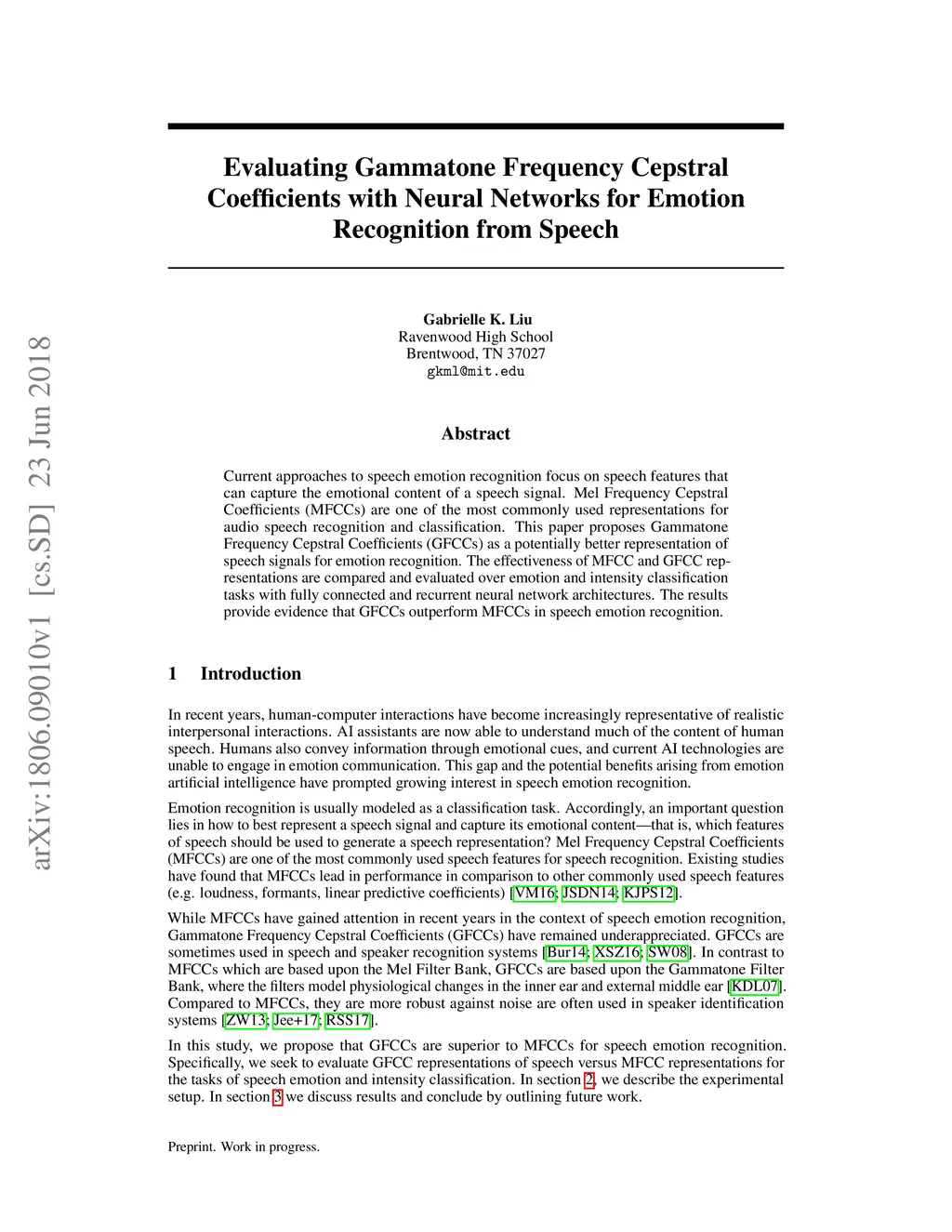 Evaluating Gammatone Frequency Cepstral Coefficients with Neural